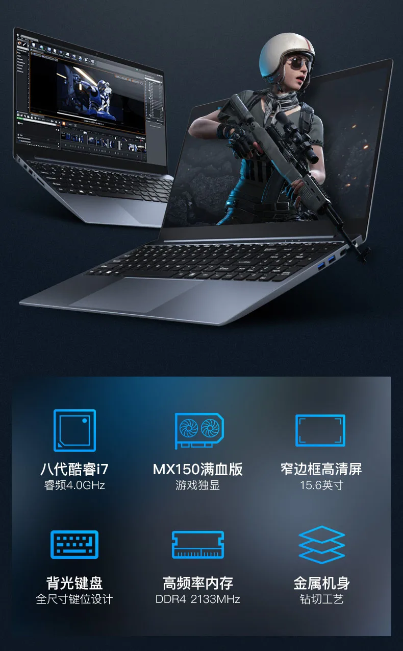 | 15,6 pulgadas MX150 Notebook Intel Core i7 8550U CPU NVIDIA 16GB 1TB SSD Teclado retroiluminado Windows 10 ordenador portátil 8Mb de caché RJ45 |