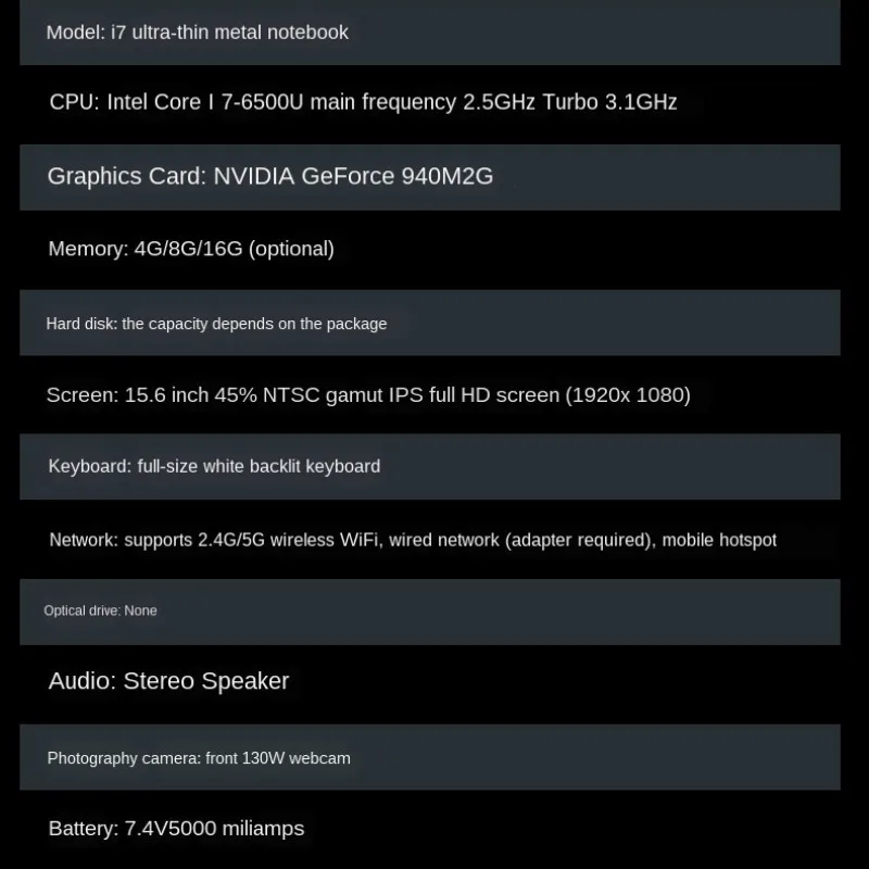 CPU:Intel CoreI7Procesador NvidiaNVIDIA GEFORCE 940MX 2GSolo,Usar el nuevoMAXWELLLa arquitectura384Unidades de procesamiento