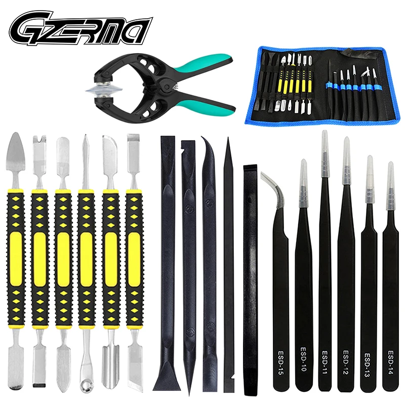 | Herramientas de reparación de teléfonos celulares 18 en 1, Kit de doble Metal Spudger, pinzas ESD, herramientas de desmontaje de pantalla LCD para teléfono portátil SMD |