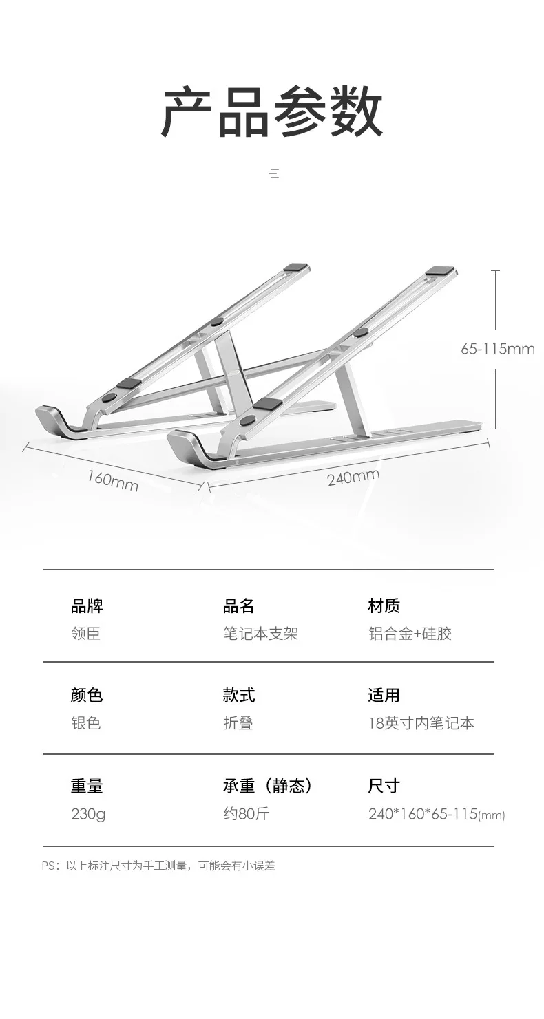 | Soporte portátil para ordenador portátil, tableta de escritorio ajustable para Macbook, soporte plegable de aluminio antideslizante para ordenador portátil, soporte para ordenador PC |