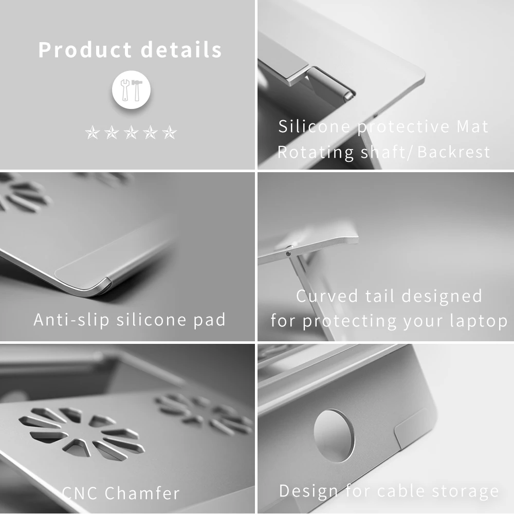 | Soporte de aluminio para portátil, soporte de aluminio ventilado, soporte de escritorio Universal plegable y portátil de hasta 17'' |