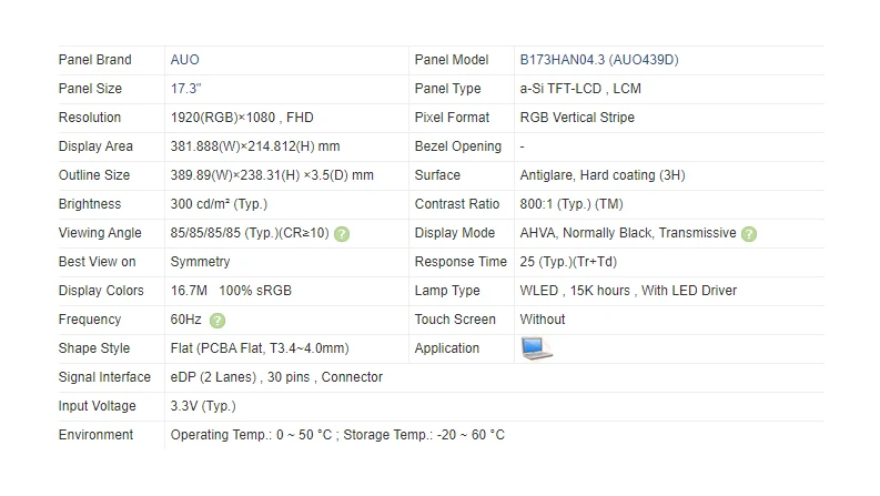 Best Price Comparison With B173HAN04.3 pantalla LCD LED IPS para ordenador portátil AUO 439D 17,3 Pantalla Plana mate Original para ordenador portátil FHD 2K 1920*1080 30 pines 100% sRGB