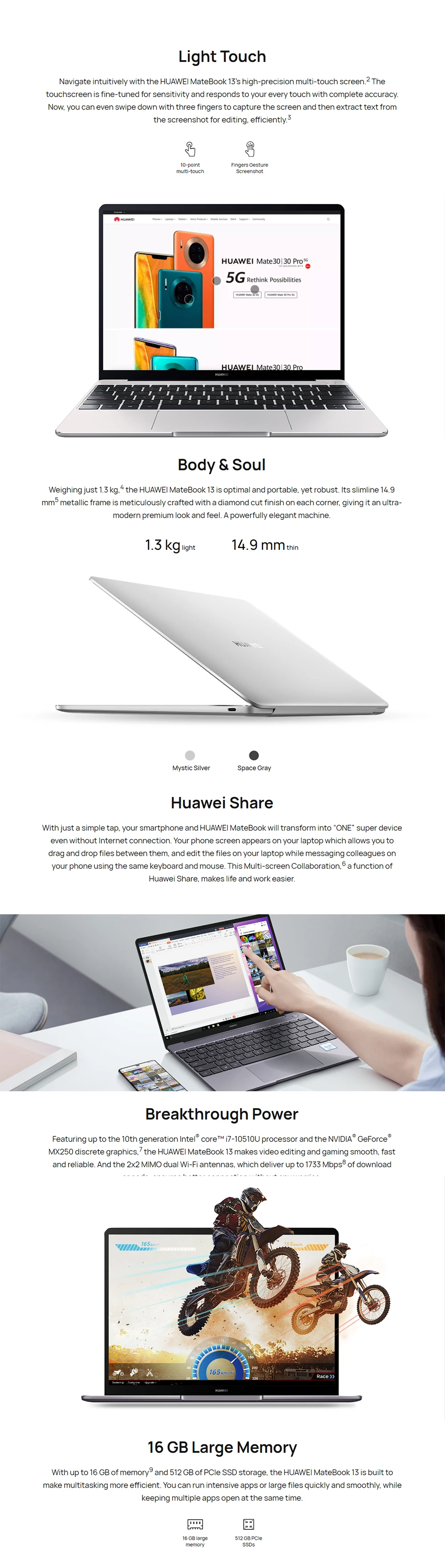 | Ordenador portátil HUAWEI MateBook 13 2020 de 13 pulgadas i7-10510U 16GB 512GB 2K pantalla táctil Windows versión delgada y ligera |