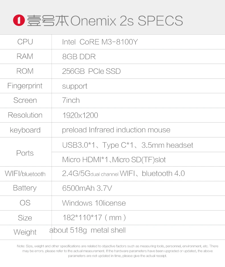 | Original una mezcla 2S bolsillo Mini portátil ordenador portátil PC Windows 7 Intel Core M3-8100Y 8GB DDR3 256GB PCIE SSD ultrabook |