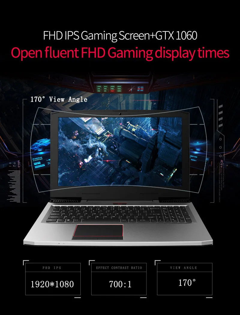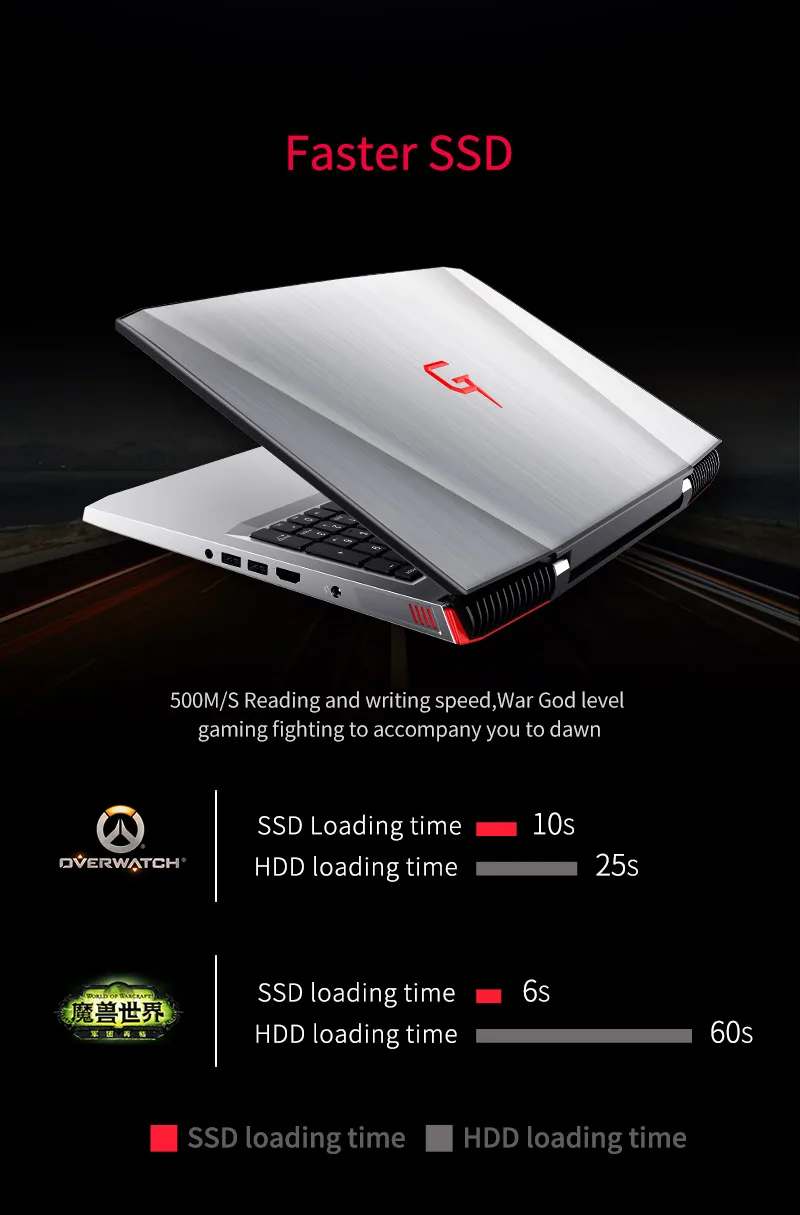 | BBEN portátil NVIDIA GTX1060 GDDR5 Intel i7 Kabylake 8GB RAM M.2 SSD RGB retroiluminado teclado Win10 WiFi BT Ordenador de juegos 15,6 ''IPS |