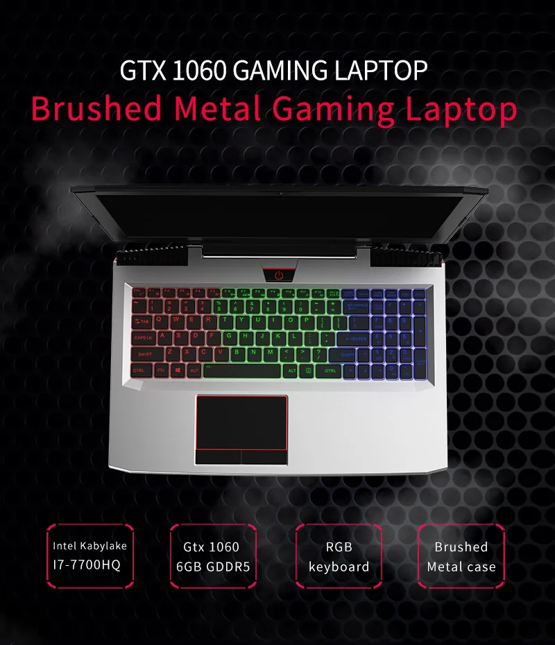 BBEN 15,6 "portátil NVIDIA GTX1060 Intel i7 7700HQ Kabylake RGB retroiluminado teclado Windows 10 caja de Metal