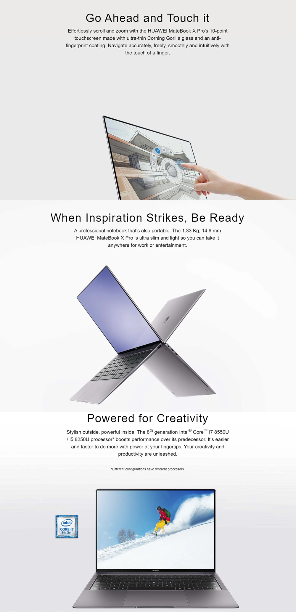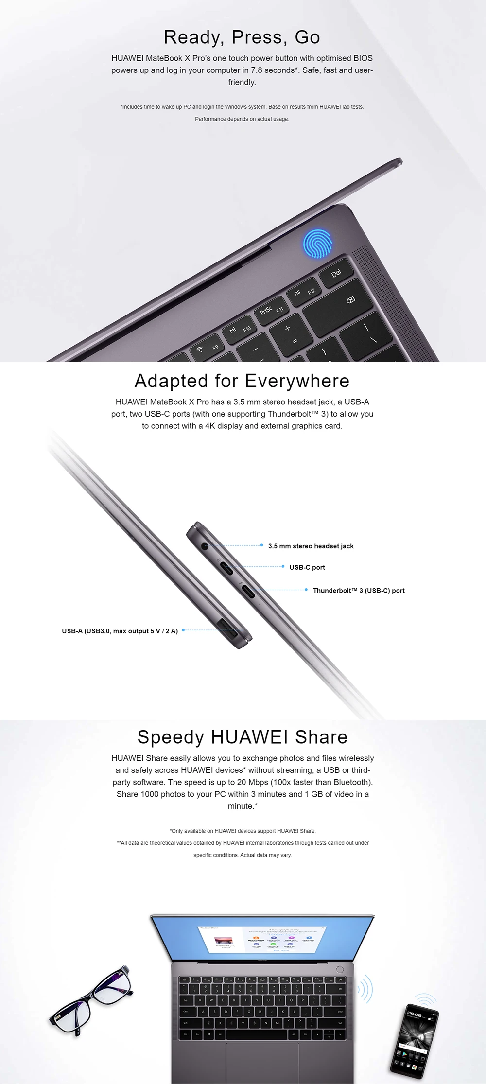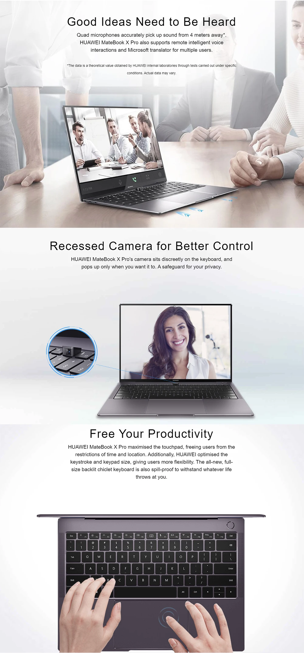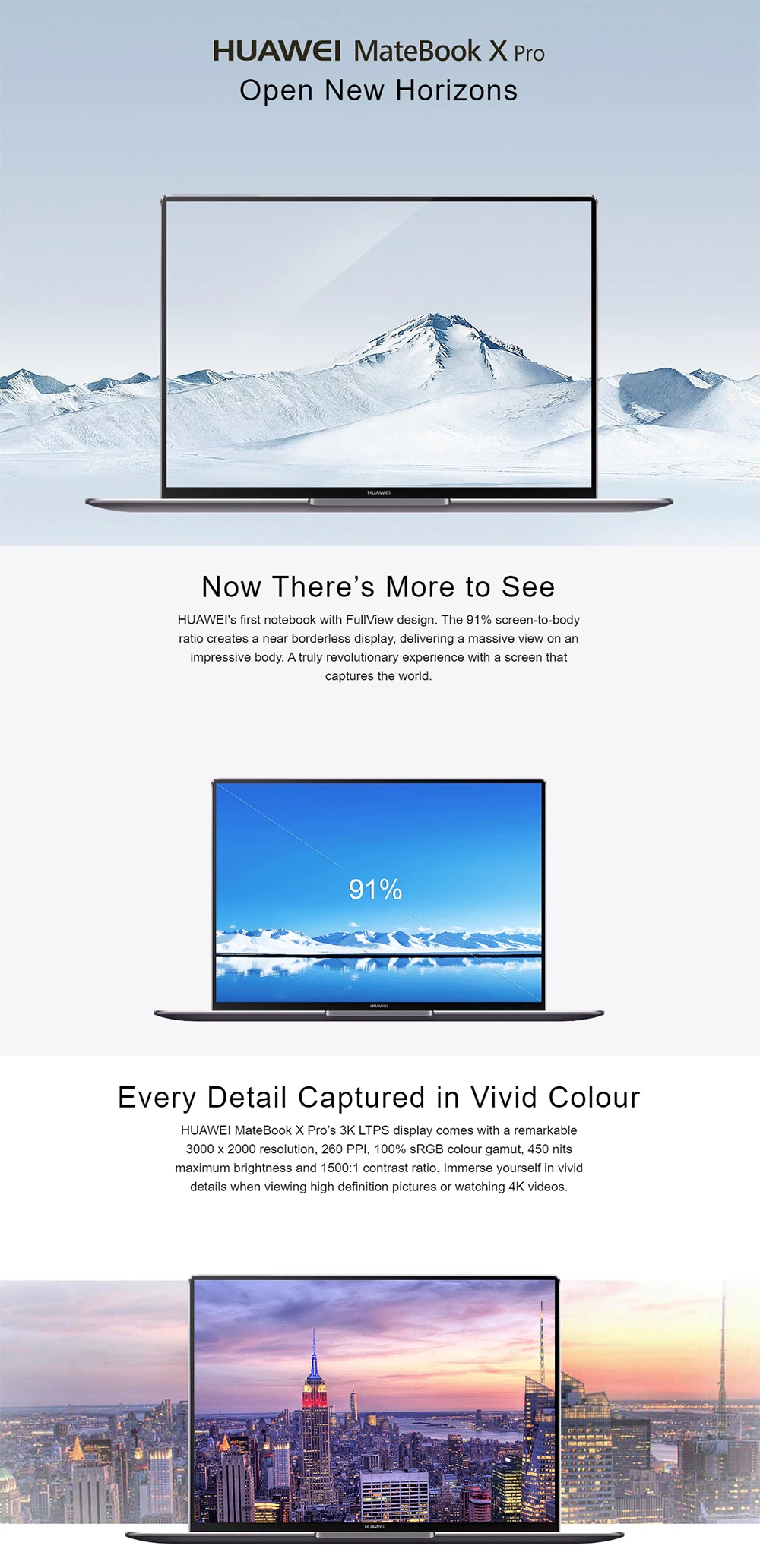| Portátil Huawei MateBook X Pro 2019 de 13,9 pulgadas i5 8GB 512GB pantalla independiente 3K pantalla táctil completa portátil delgada y ligera |