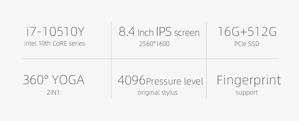 OneMix3 Pro Platinum portátil de 8,4 pulgadas con pantalla táctil Intel Core i7-10510Y Quad-Core 16GB 512GB Windows 10 tablet PC Yoga notebook