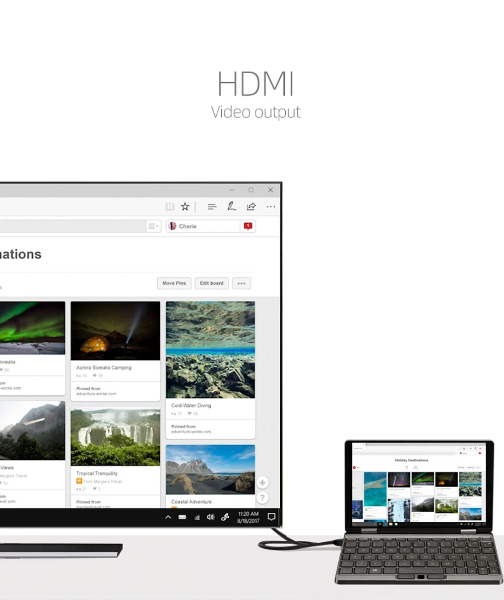 Solo se necesita un cable HDMI o una estación de acoplamiento tipo C para conectar el onemix a la pantalla. La pantalla grande, la pantalla para compartir y la impresora se pueden conectar para hacer la demostración de reunión in situ y la Oficina no móvil más fácil y eficiente.