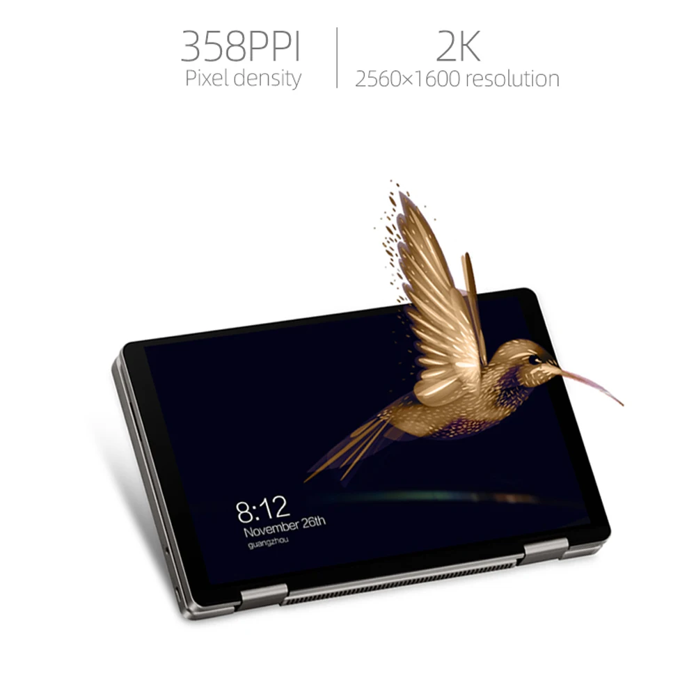 Diseño de bisagra inteligente de 360 °, entretenimiento de oficina en modo portátil, creación de lectura en modo tableta y combinación ingeniosa de función de portátil y función de tableta se puede aplicar fácilmente en el avión, Riel de alta velocidad del coche, O La Oficina