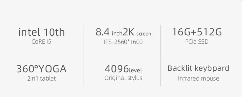 Una Netbook una mezcla 3 PRO Teclado en inglés de 8,4 pulgadas del ordenador portátil intel cometa lago i5-10210Y 16G RAM 512G SSD PCIe windwos 10	Destaca	Fotos