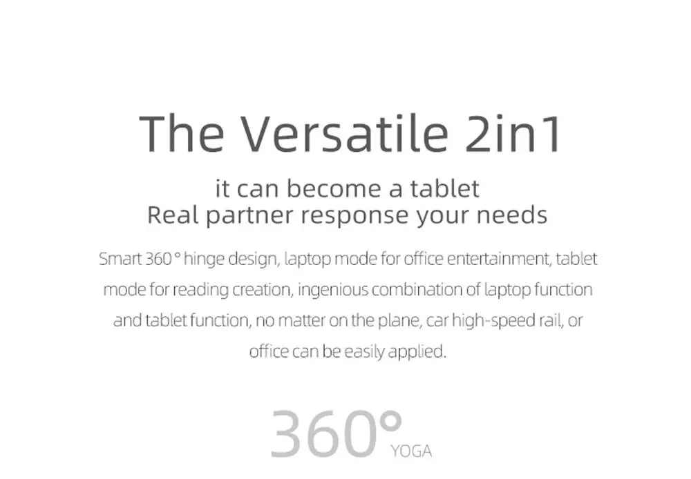 Diseño de bisagra inteligente de 360 °, modo de portátil para entretenimiento de oficina, modo de tableta para creación de lectura, combinación ingeniosa de función de portátil y tableta, no importa en el avión, Riel de alta velocidad del coche, O La Oficina se puede aplicar fácilmente.