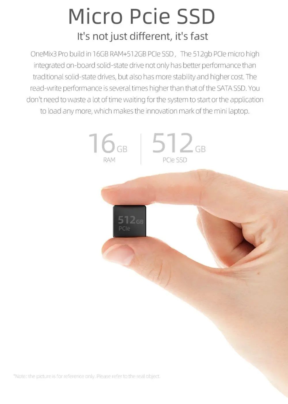 OneMix3 Pro build in 16GB RAM + 512GB PCle SSD, la unidad micro de 512gb pcle alta integrada a bordo de estado sólido no solo tiene un mejor rendimiento que las unidades tradicionales de estado sólido, pero también tiene más estabilidad y mayor costo. El rendimiento de lectura-escritura es varias veces mayor que el de la SSD SATA. No necesita perder mucho tiempo esperando que el sistema se inicie o la aplicación se cargue más, lo que hace que la marca de Innovación del mini portátil