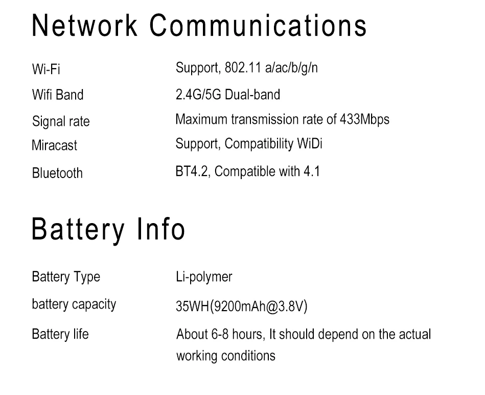 Chip WiFi de doble banda integrado de 2,4G / 5G, doble canal de hasta 867Mbps de velocidad de transmisión. Con una velocidad de descarga de casi 108 MB/S, solo tarda unos 10 segundos en descargar una película de 1GB. Bluetooth 4,2 integrado, compatible con Bluetooth 4,1, admite opciones de conexión IPv6.
