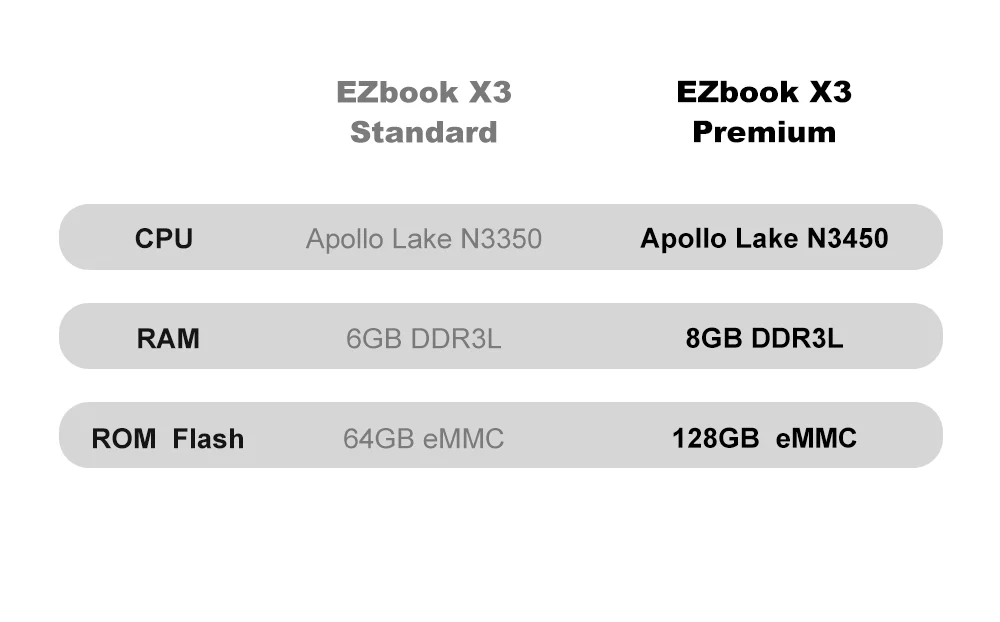 En comparación con el estándar, las actualizaciones Premium de la CPU de cuatro núcleos de alta calidad de Intel N3450 (el estándar es N3350 de doble núcleo), y la frecuencia de GPU se incrementa de 650MHz a 700MHz, ofrece un rendimiento más potente.