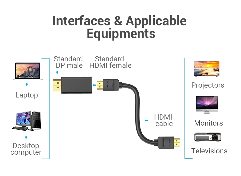 | Vention adaptador de DP a HDMI 1080P puerto de pantalla macho a HDMI hembra Convertidor para HDTV ordenador portátil proyector DisplayPort a HDMI nuevo |