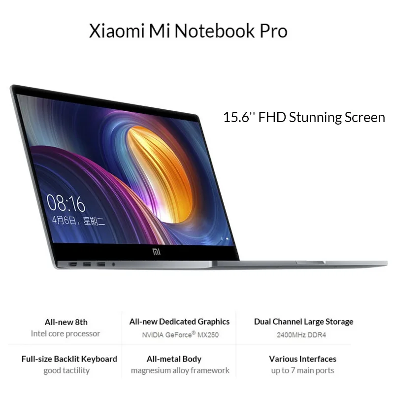 Buy Now On AliexpressOrdenador portátil Original xiaomi Pro 15,6 i7-10510U mejorado MX250 2GB GDDR5 memoria 16GB RAM 1TB SSD pantalla FHD