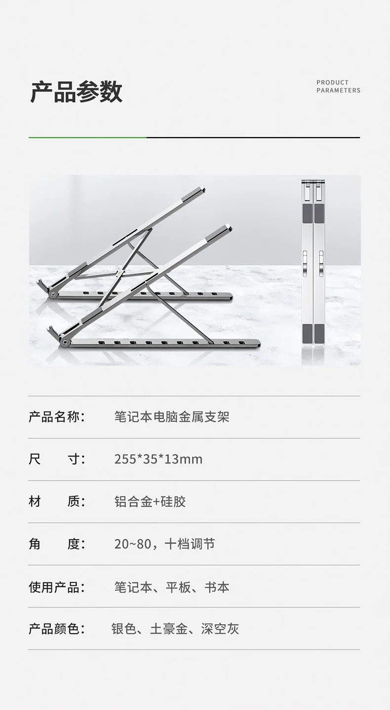 | Soporte portátil para ordenador portátil, tableta de escritorio ajustable para Macbook, soporte plegable de aluminio antideslizante para ordenador portátil, soporte para ordenador PC |