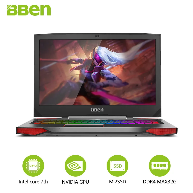 | Ordenadores portátiles Bben G17 NVIDIA GTX1060 Intel i7-7700HQ 7th Gen. Kabylake 17,3 pulgadas pro windows10 con licencia DDR4 RAM |