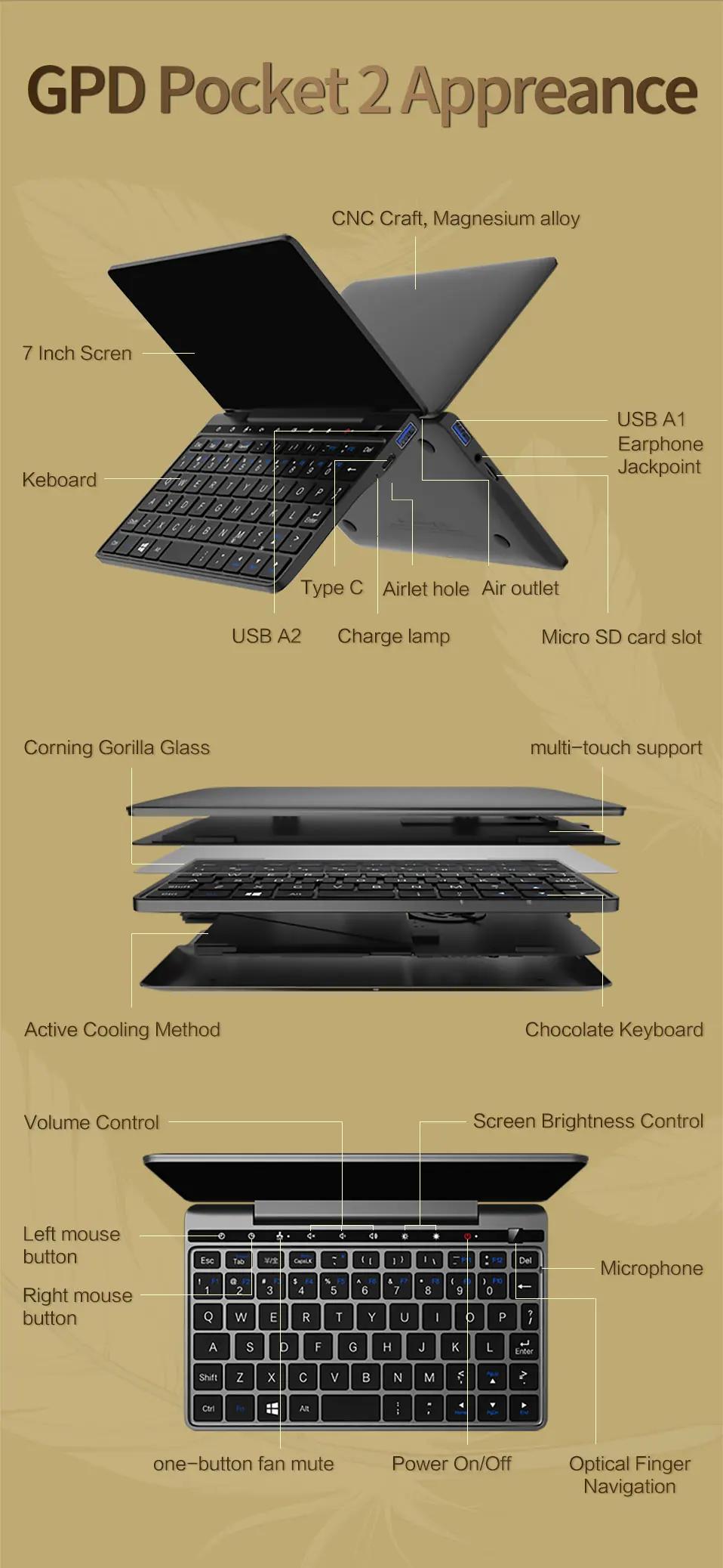| Actualizado GPD bolsillo 2 Pocket2 8GB 256GB pantalla táctil de 7 pulgadas Mini PC de bolsillo portátil CPU Intel Celeron 3965Y Windows 10 |