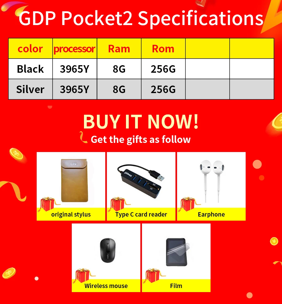 Best Price Comparison With Actualizado GPD bolsillo 2 Pocket2 8GB 256GB pantalla táctil de 7 pulgadas Mini PC de bolsillo portátil CPU Intel Celeron 3965Y Windows 10