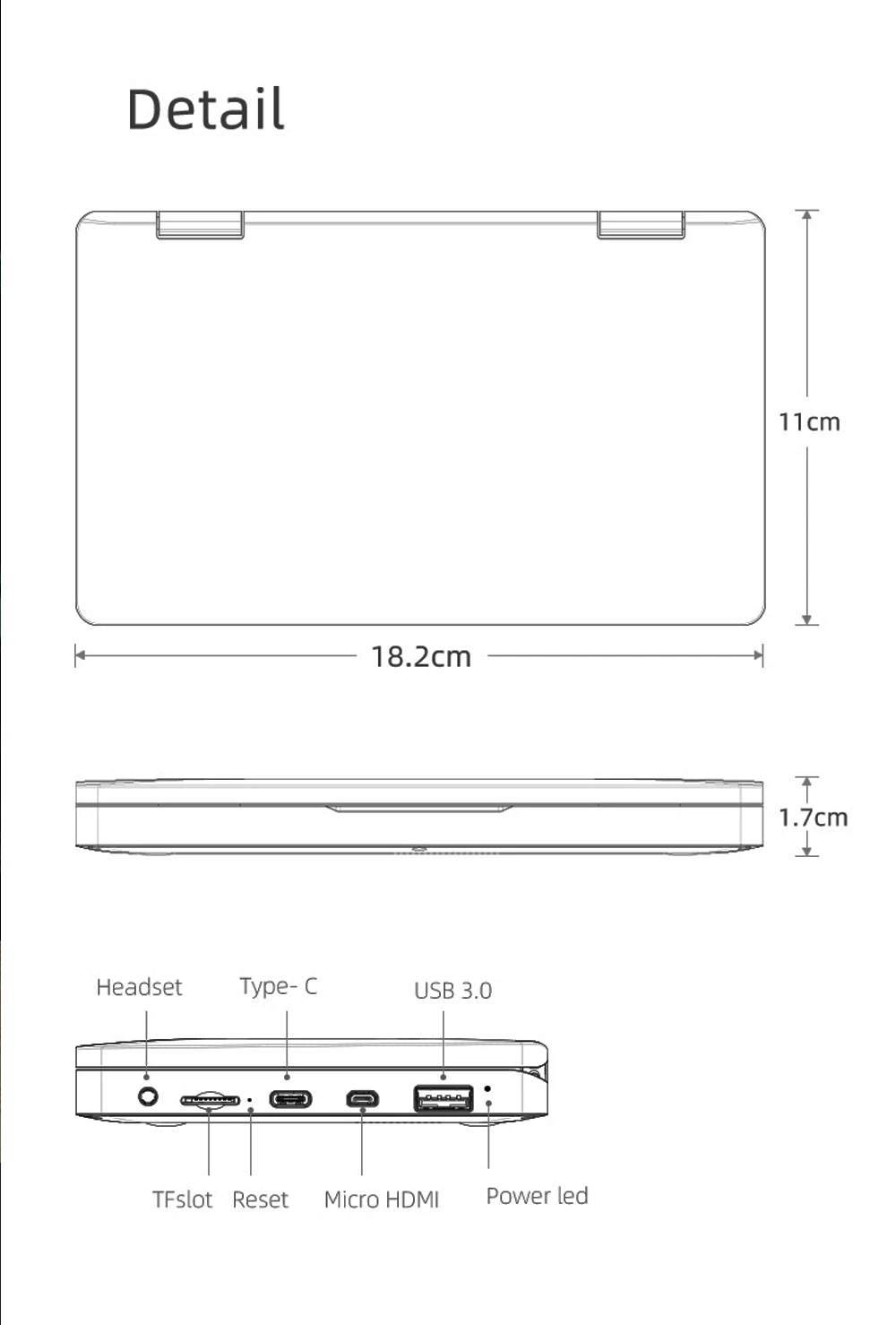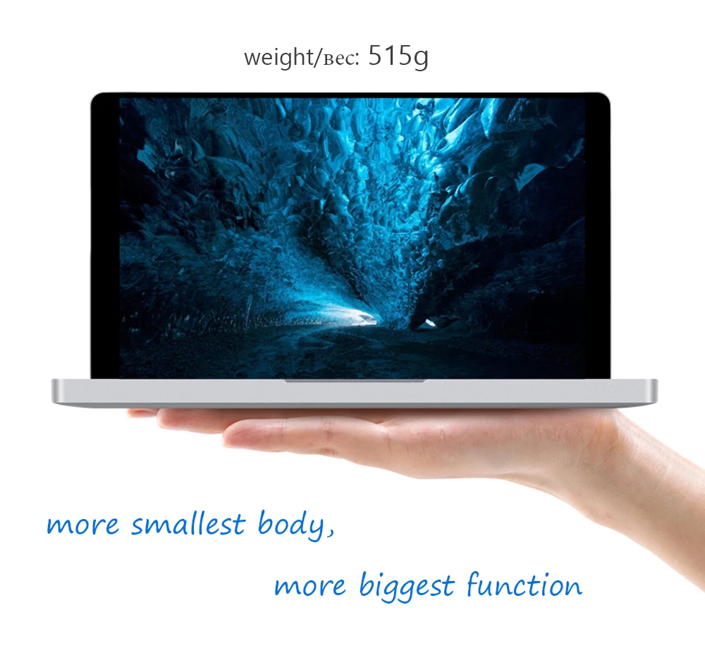 Pantalla HD IPS de 7 pulgadas, diseño de bisel estrecho, el tamaño aproximado del 1/3 del portátil convencional de 14 pulgadas.