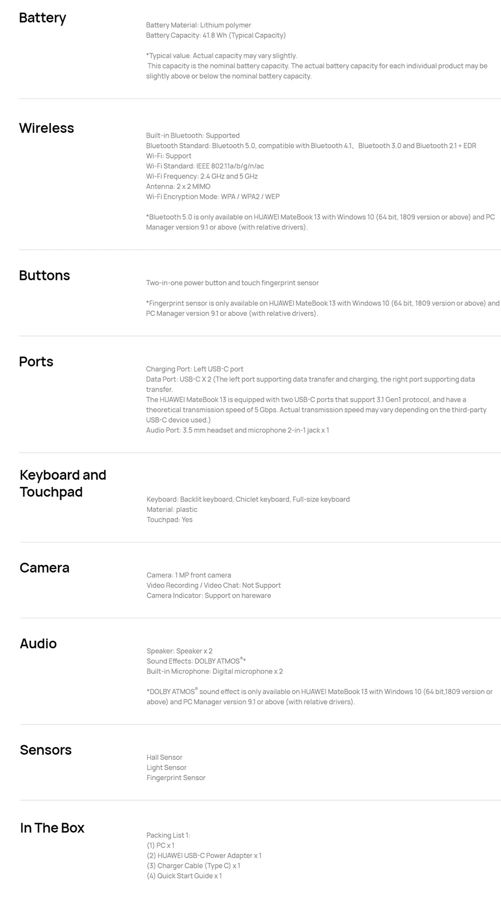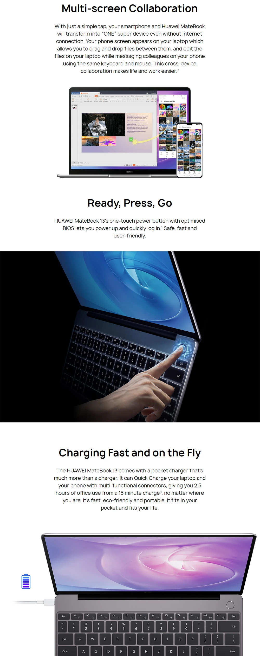 | HUAWEI MateBook 13 laptop Ryzen 5 3500U 16GB 512GB 2K Pantalla Completa fino y ligero rendimiento notebook huella digital desbloqueo |