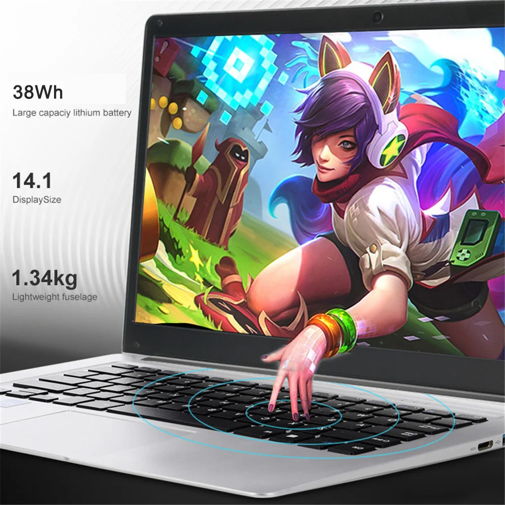 | Ordenador portátil Intel E8000 de 14,1 pulgadas, ordenador portátil de 4GB de RAM 256GB ROM con HDMI Bluetooth 4,0 webcam |