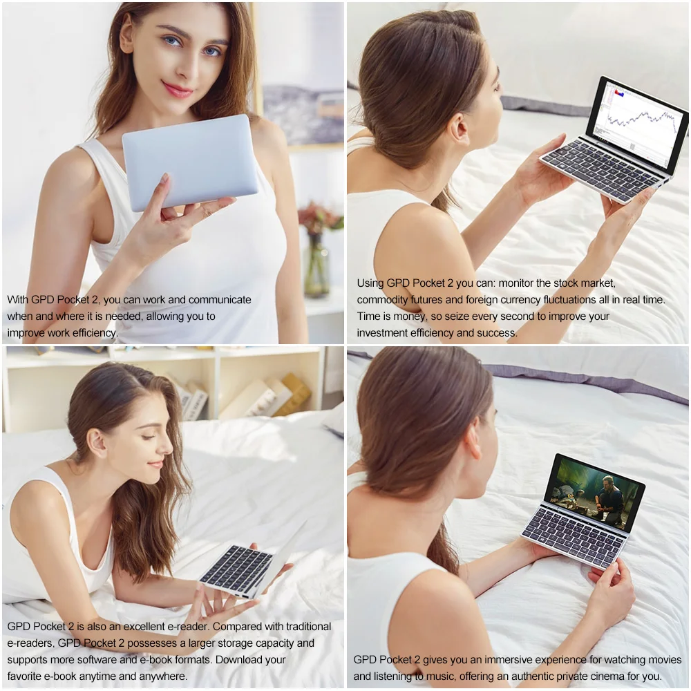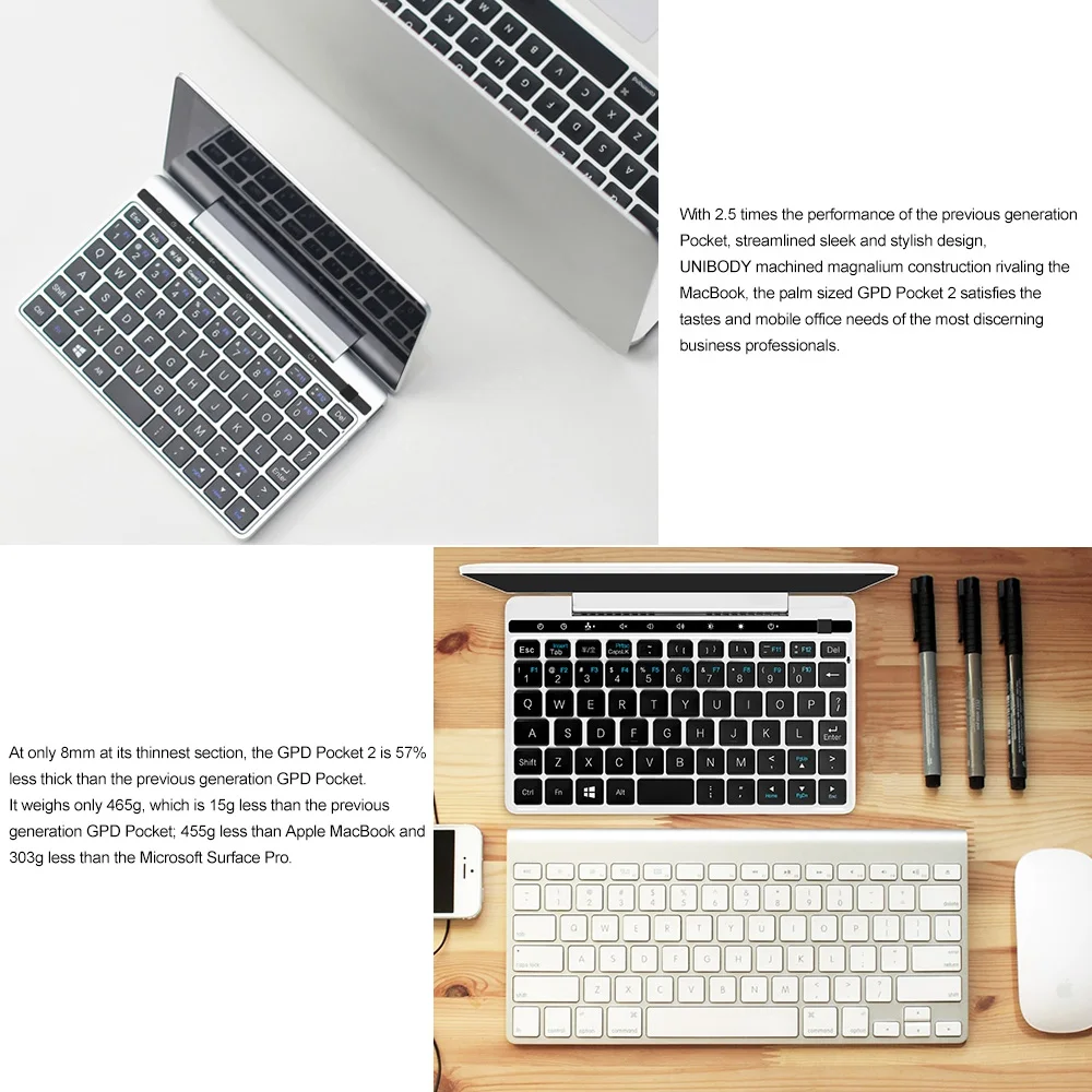 Hay muchos Ultrabook en el mercado, pero son voluminosos e incómodos de llevar. Hemos lanzado un ordenador portátil correctamente con las características de ligero y ultrafino, se puede poner en un bolso de mano o en un bolsillo. Es muy adecuado para las multitudes de la Oficina ligera o de la oficina móvil, los usuarios dan un gran reconocimiento. Y este año, lanzamos su producto de segunda generación-Bolsillo GPD 2.