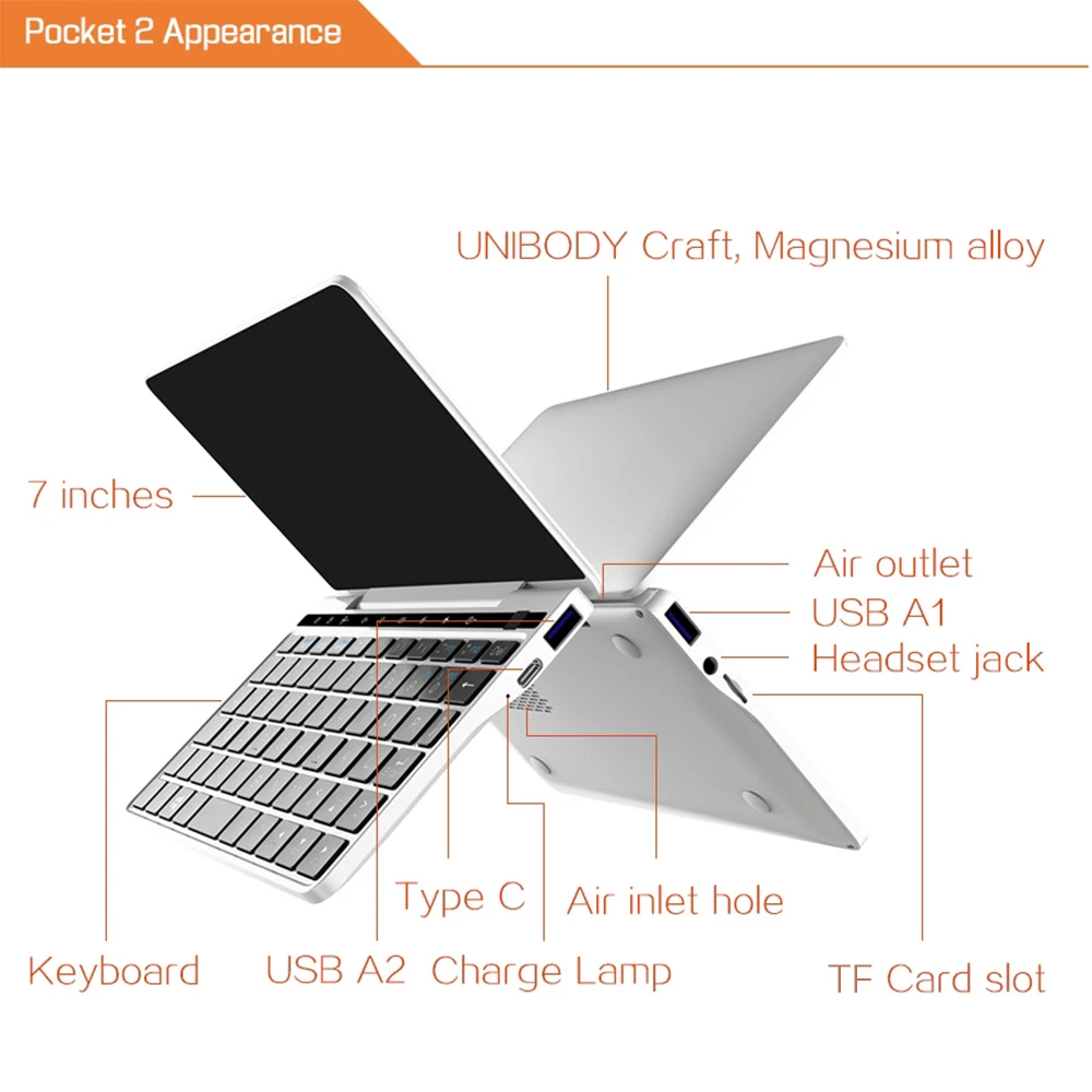 | GPD bolsillo 2 7 pulgadas Mini Laptop Tablet PC Windows 10 64bit Intel Core m3-7y30 portátil 8 GB/128 GB 2,4G y 5G WiFi BT 4,1 |