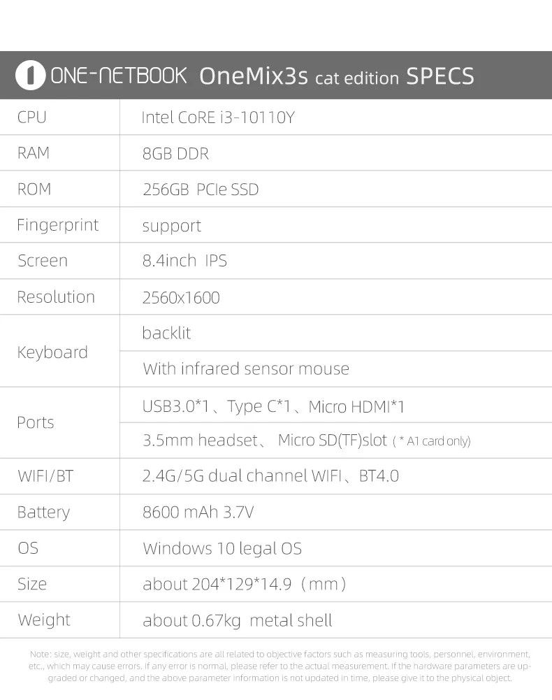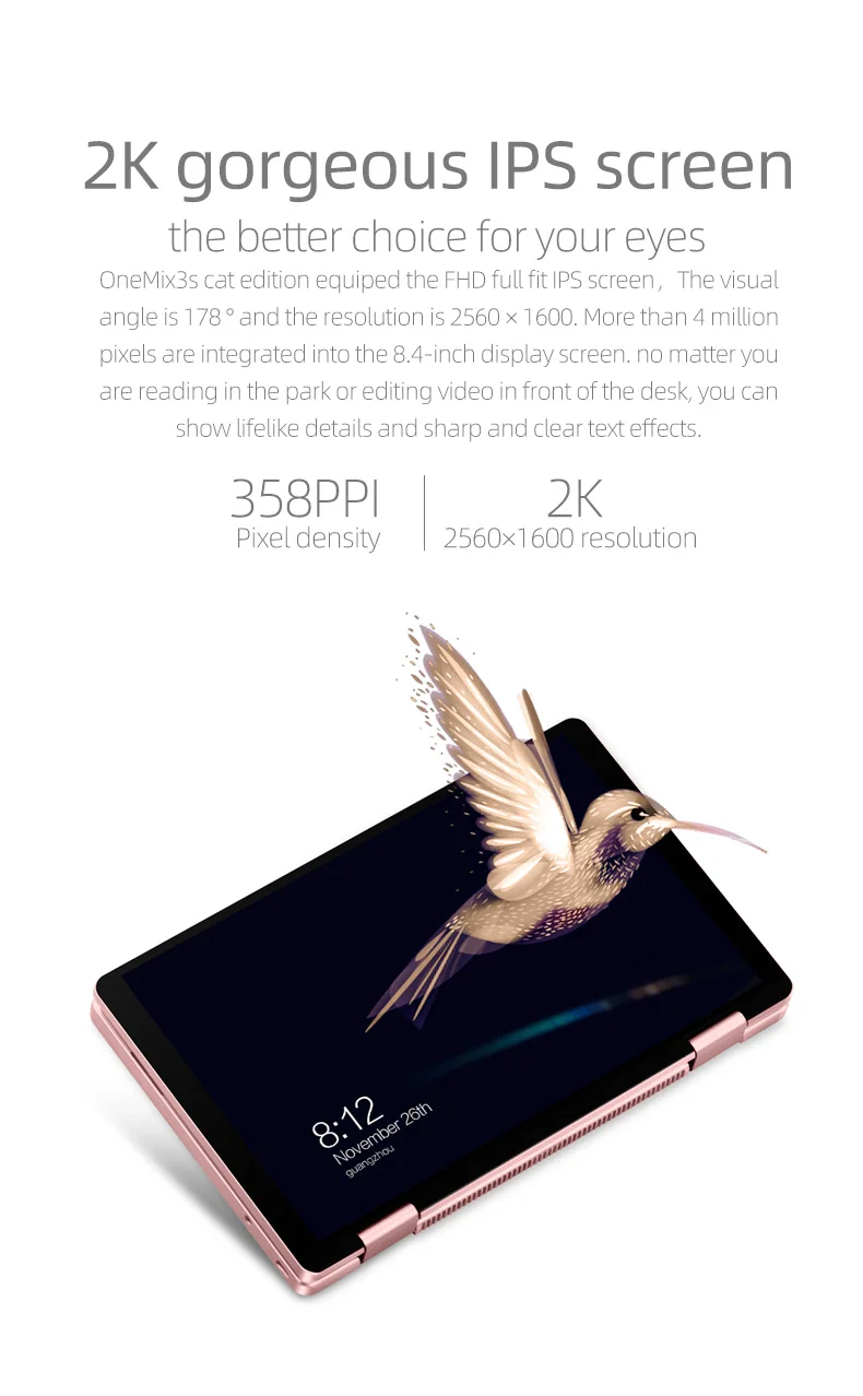 | Tableta pc 10th gen core i3 10110y con huella dactilar 2 en 1 8,4 YAGO IPS 8g 360G win10, bonita Rosa 256 oneMix3s cat edition |