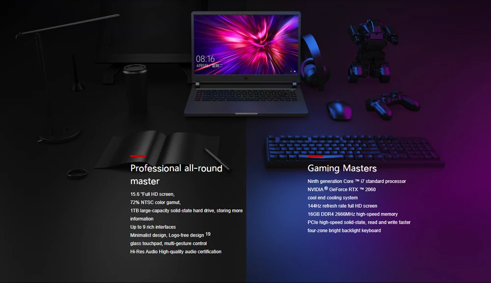 | Xiaomi gaming laptop 2019 Core i7 procesador 16GB DDR4 memoria 1TB SSD RTX2060 tarjeta gráfica sistema de refrigeración profesional |